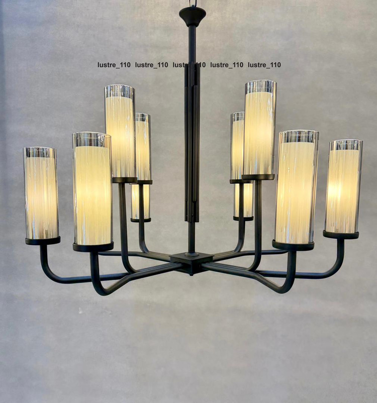 رنگ مشکی مات بدنه لوستر، ظاهری مدرن و شیک به آن بخشیده و باعث میشود به راحتی با هر دکوراسیونی هماهنگ شود. نوردهی بالا و طراحی دقیق این لوستر، آن را برای سالن پذیرایی، اتاق نشیمن یا هر فضای مدرن دیگر مناسب میکند.