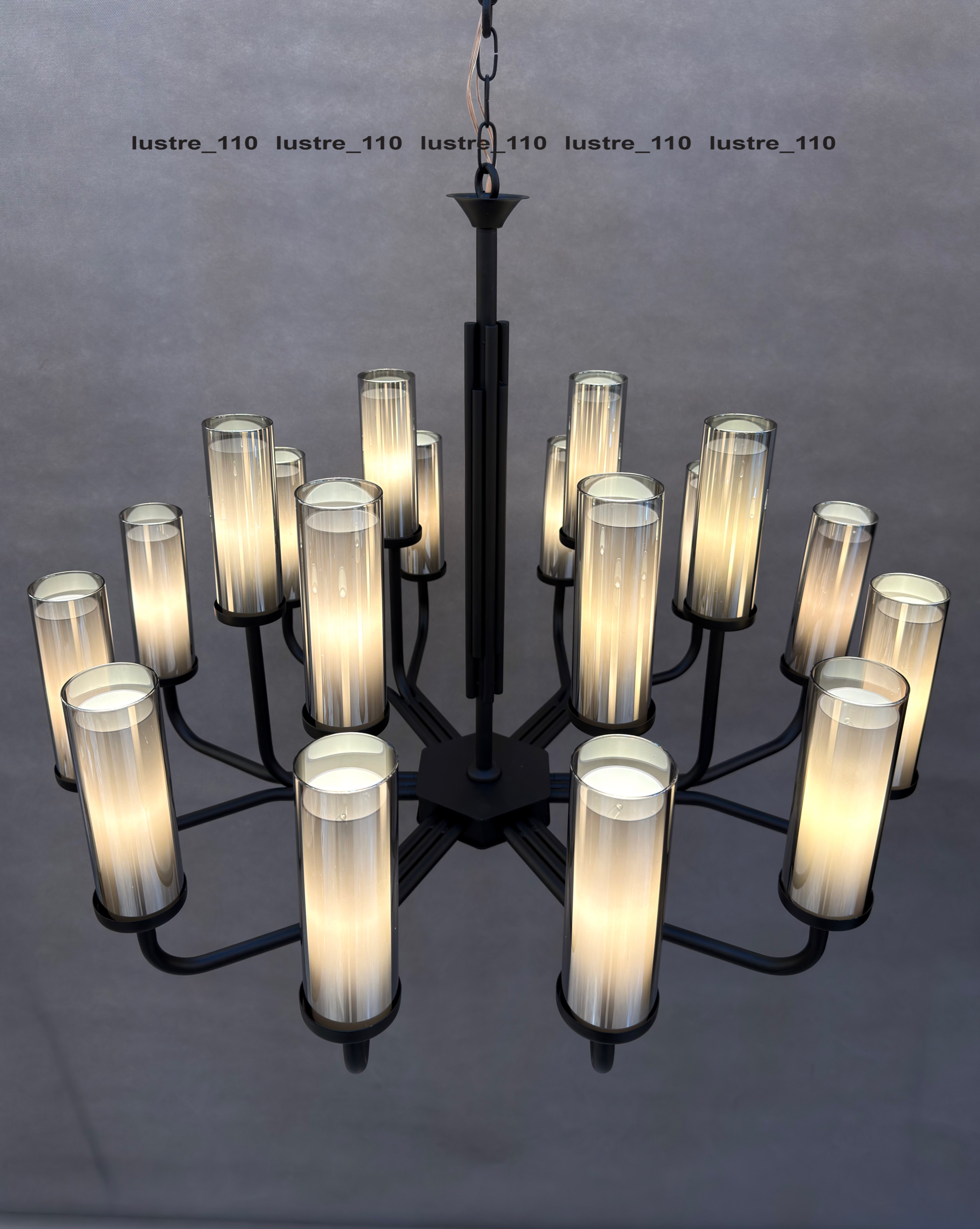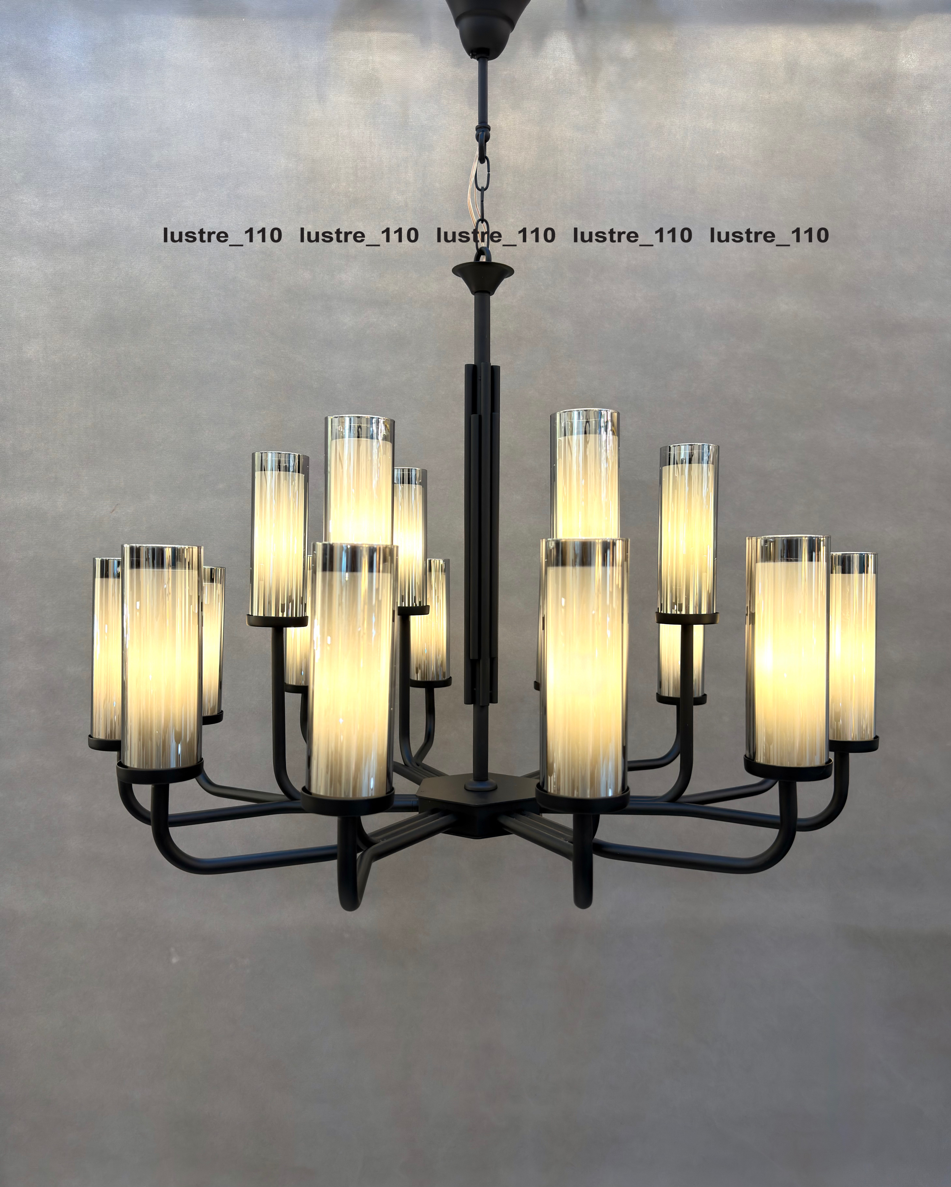 رنگ مشکی مات بدنه لوستر، ظاهری مدرن و شیک به آن بخشیده و باعث میشود به راحتی با هر دکوراسیونی هماهنگ شود. نوردهی بالا و طراحی دقیق این لوستر، آن را برای سالن پذیرایی، اتاق نشیمن یا هر فضای مدرن دیگر مناسب میکند.