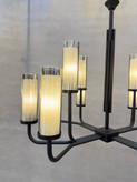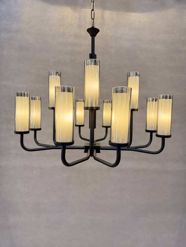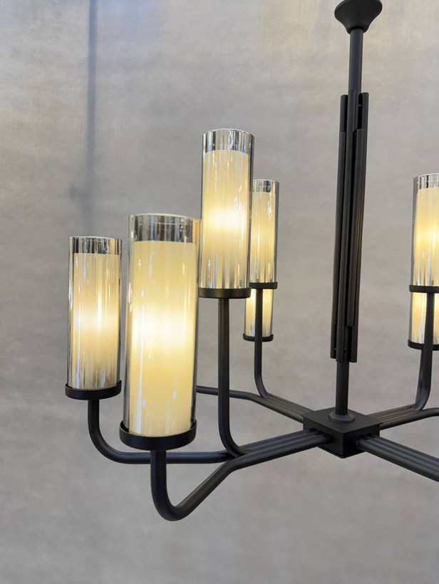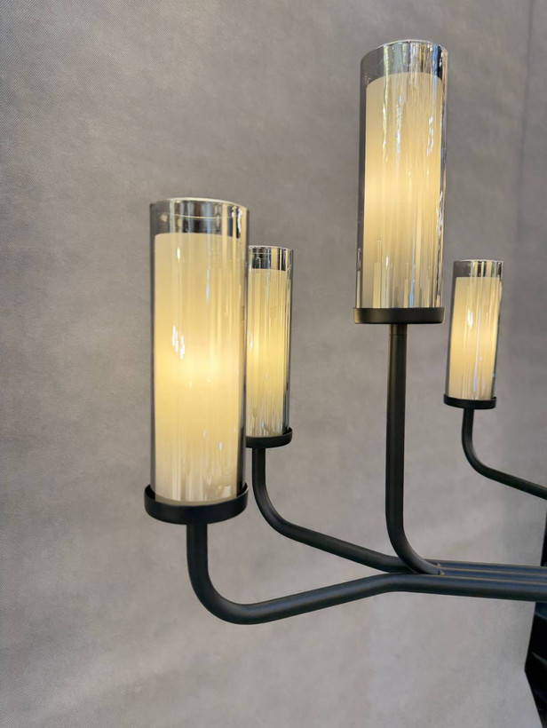 رنگ مشکی مات بدنه لوستر، ظاهری مدرن و شیک به آن بخشیده و باعث میشود به راحتی با هر دکوراسیونی هماهنگ شود. نوردهی بالا و طراحی دقیق این لوستر، آن را برای سالن پذیرایی، اتاق نشیمن یا هر فضای مدرن دیگر مناسب میکند.